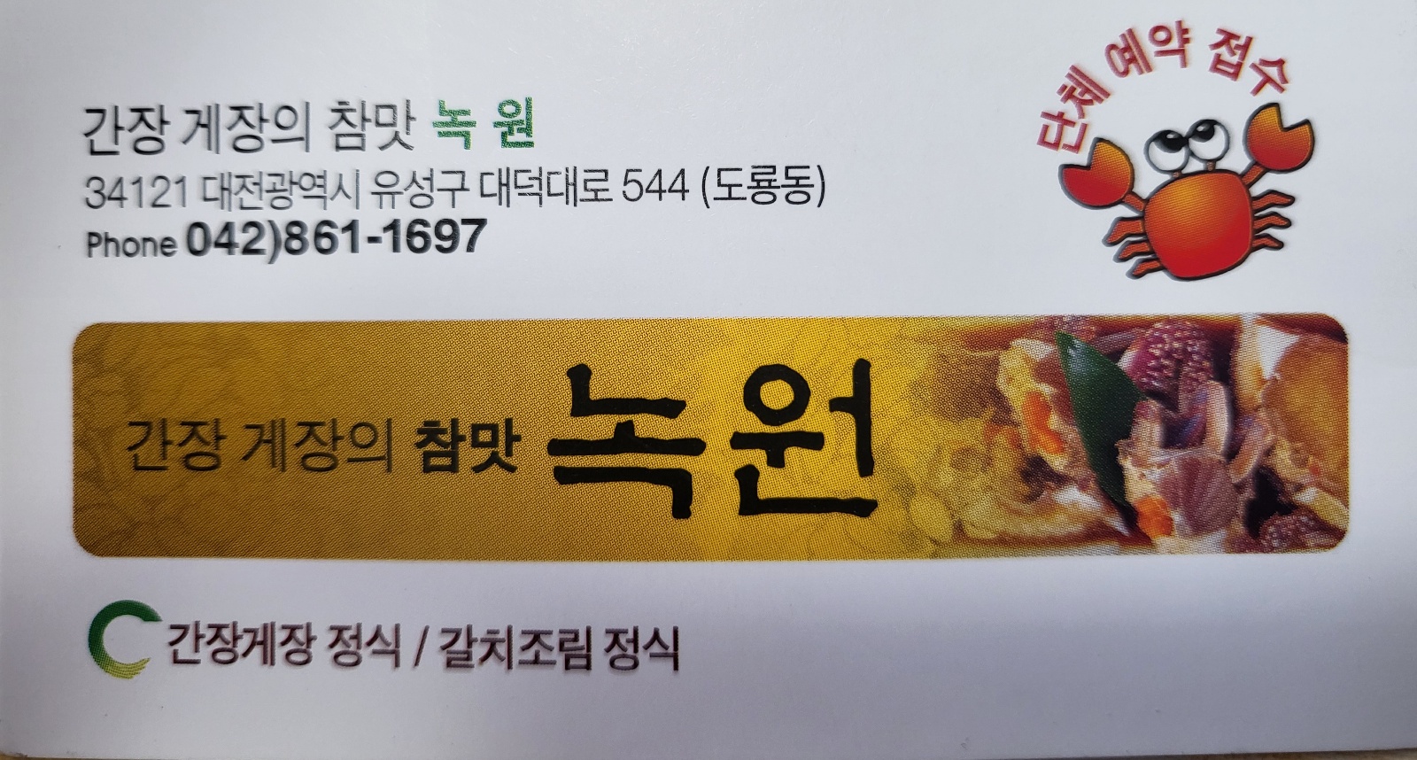 '녹원간장게장'은 대덕연구단지 내에 자리한 간장게장 전문점으로, 외관은 단독 주택을 개조한 듯한 느낌을 준다.