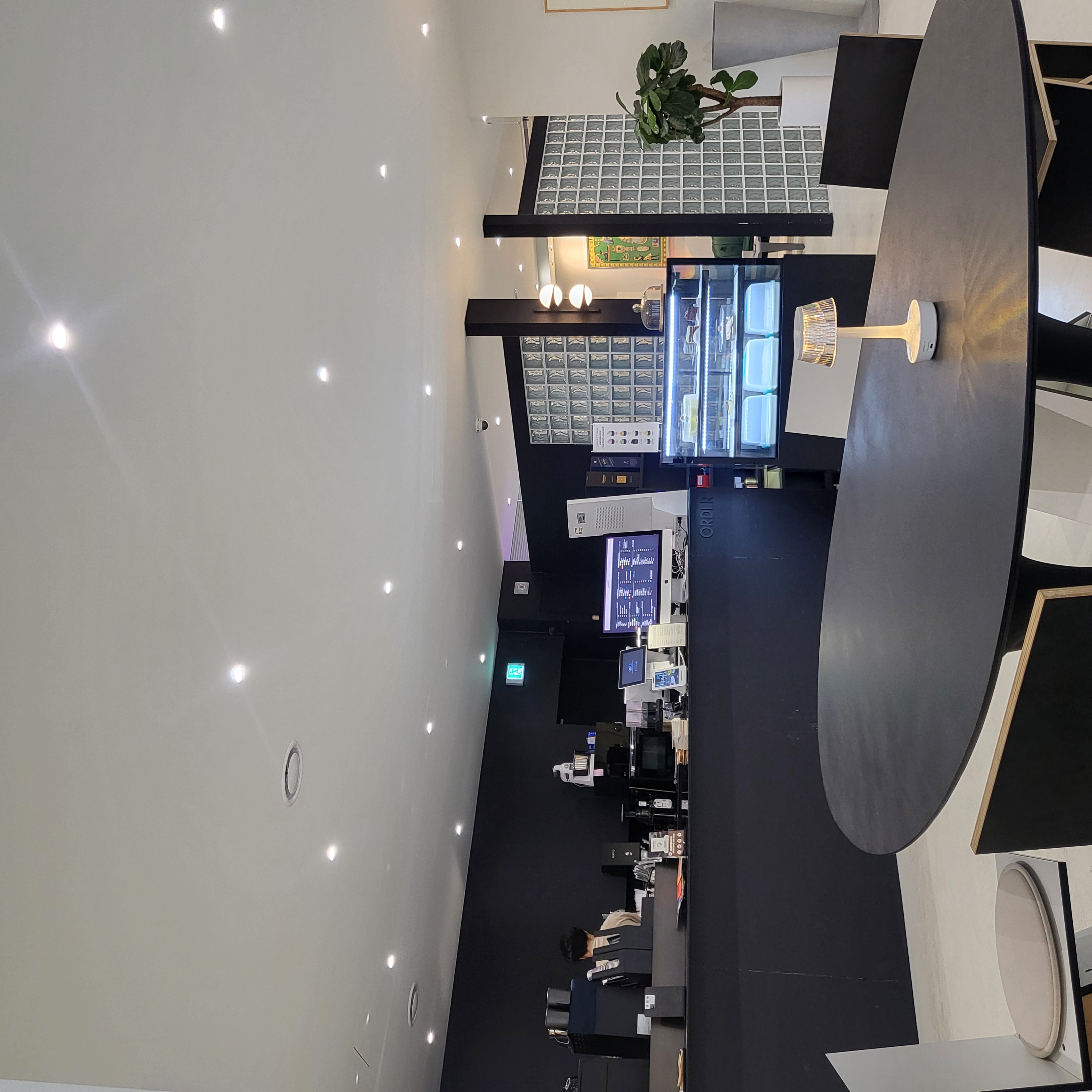 테이블 간격도 넓찍하구 모던한 인테리어가 몹시 감각적이다.