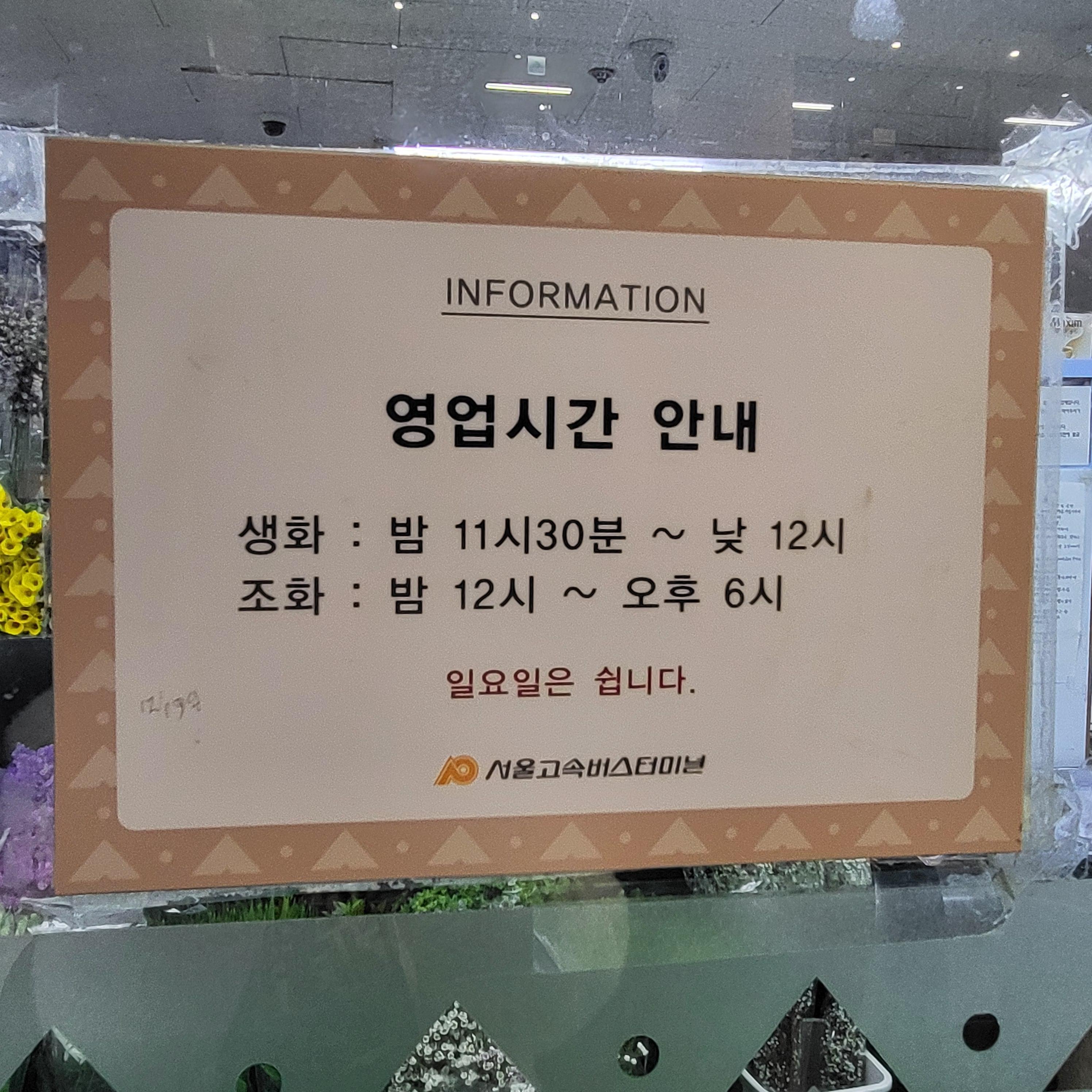 생화: 월 ~ 토, 23:00 ~ 12:00