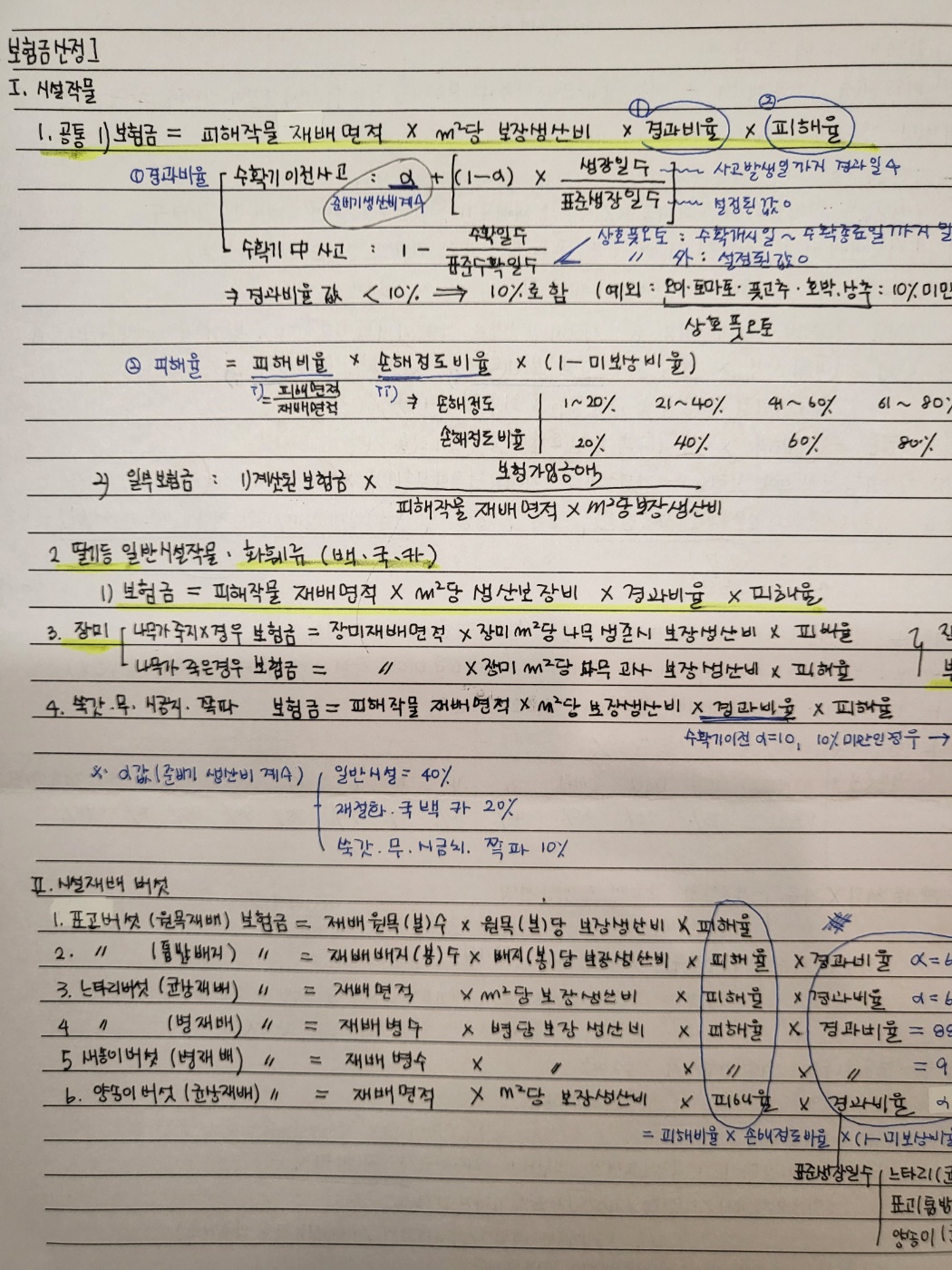 * 보험료의 계산이 기존의 다른 작물들과는 다름에 주의!
