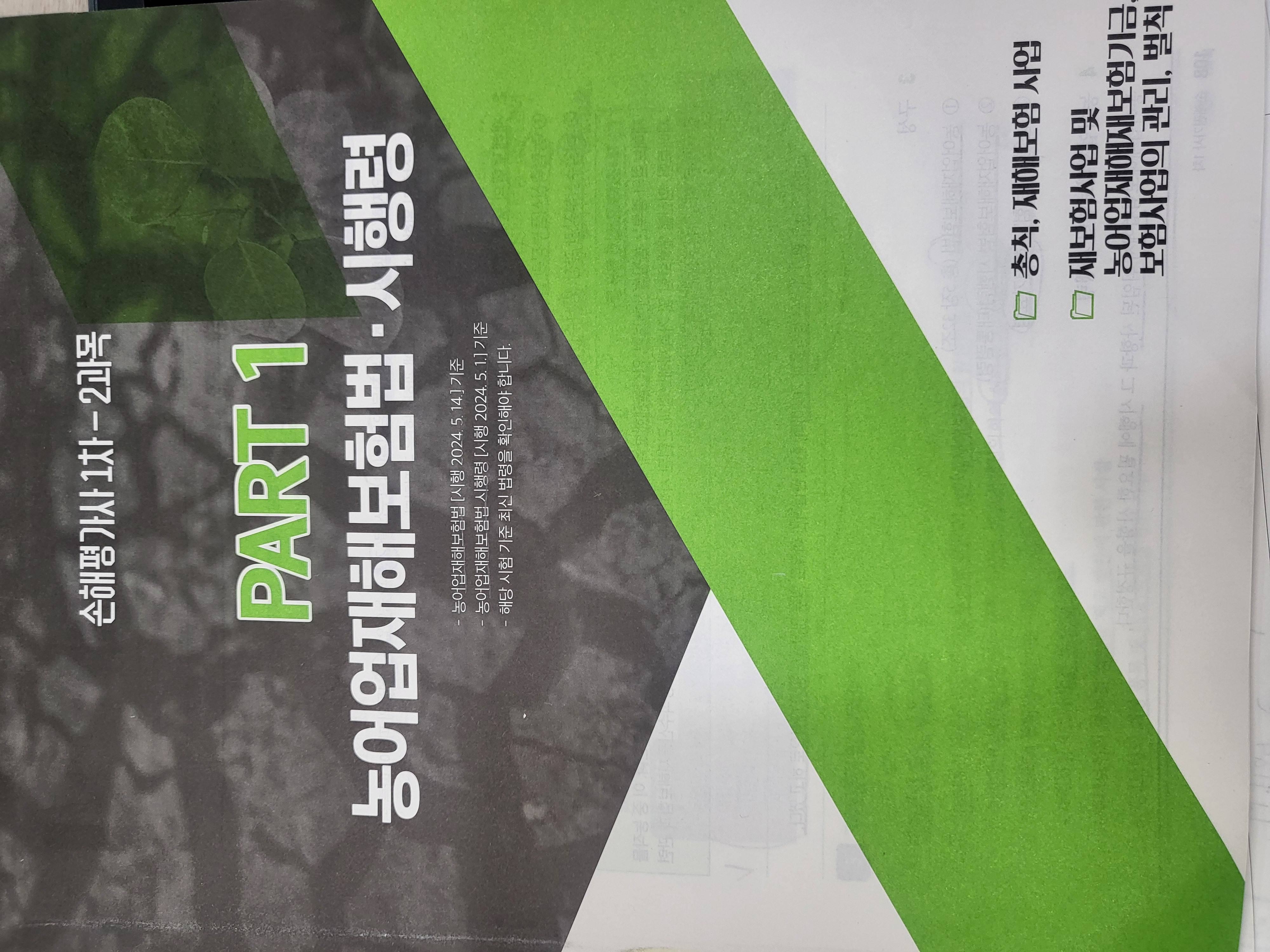 오늘은 제2과목 농어업재해보험법 이론서 중 Part 1 부분을 일독하며 문제풀 때 헷갈렸던 부분이나 꼭 나오겠다 싶은 부분을 요약해 보았습니다.