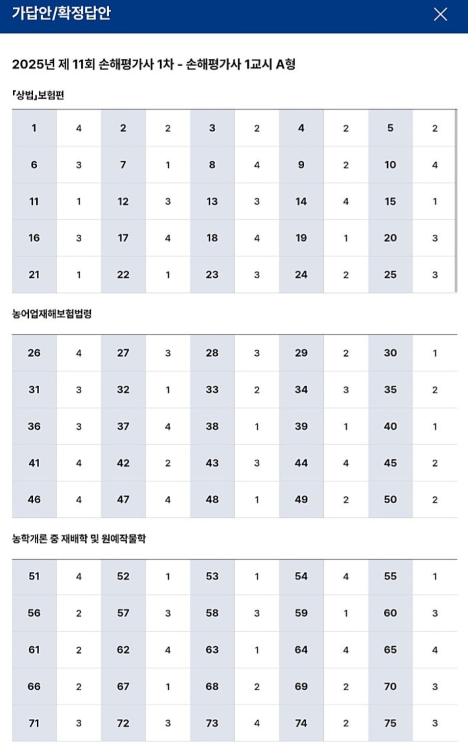 - 제2과목: 농어업재해보험법령 (25문항)