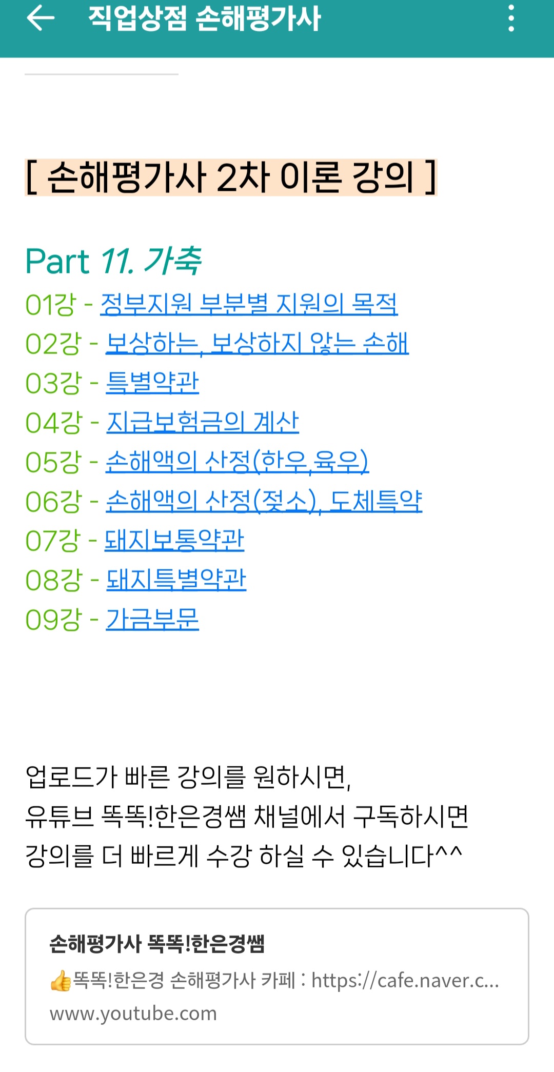 Part 11 가축재해보험 파트에만도 총 9개의 강의가 있다. 오늘 새벽엔 그 두번째인