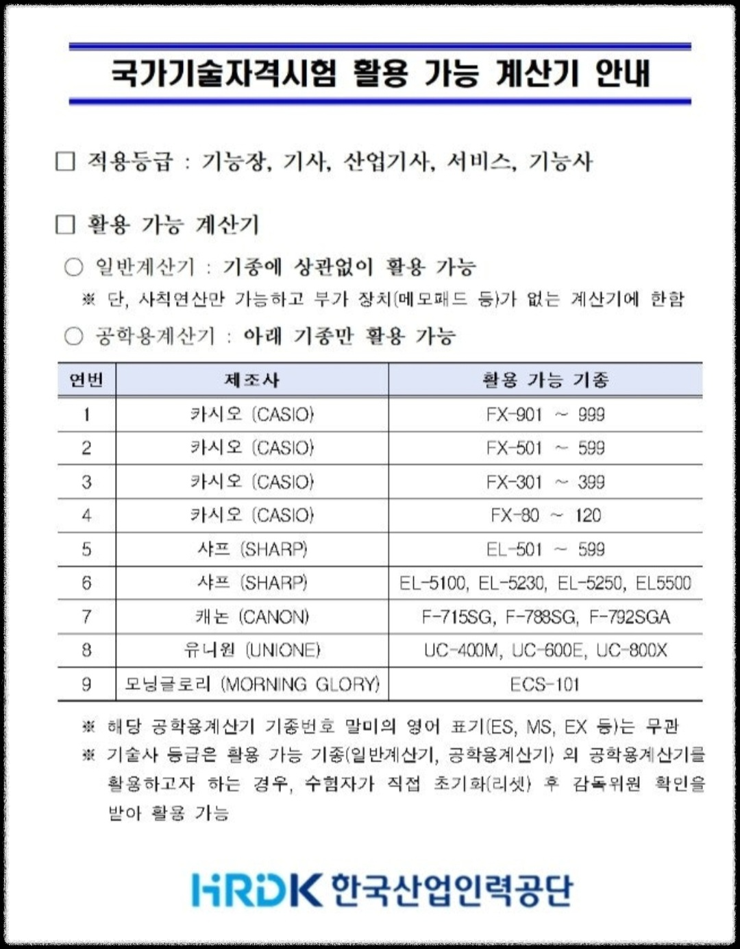 별생각 없이 리셋만 해서 지참한다면 공학용계산기 종류는 불문하는 줄 알았는데...