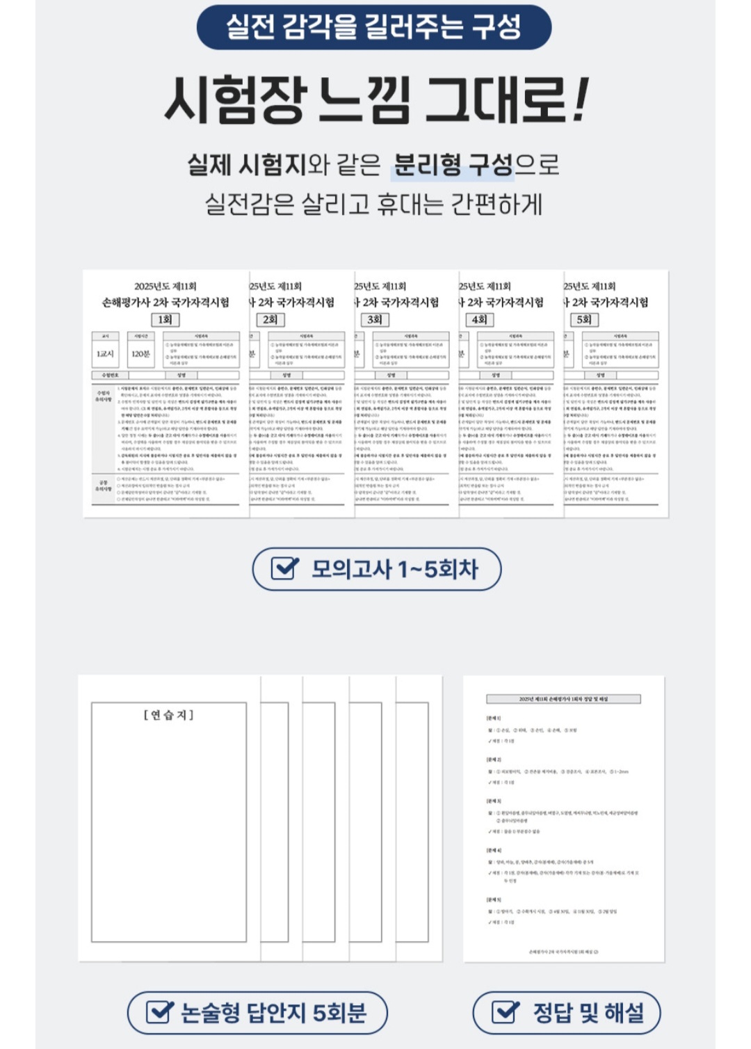 실제 시험지와 같은 분리형으로 구성되어 시험장 느낌을 그대로 살려 출간되었다. 그리고 교재를 구매하면 문제풀이 영상을 무료로 수강할 수 있다.
