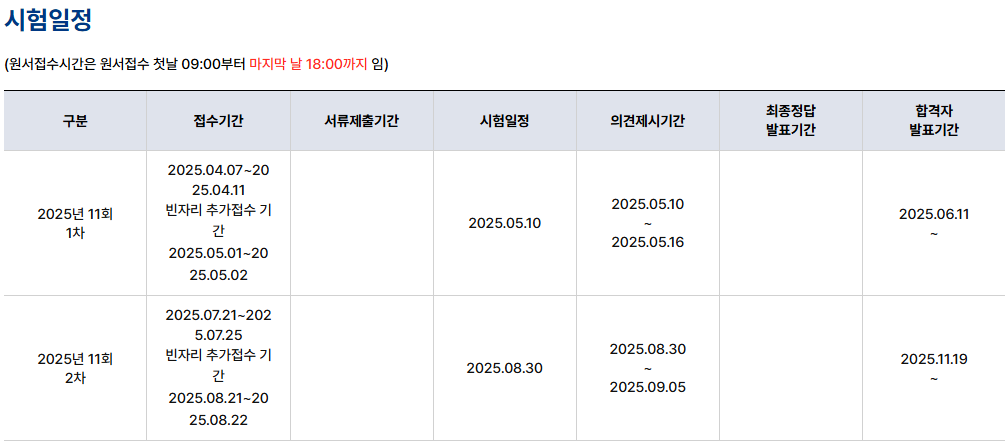 2. 2025년 손해평가사 시험 일정