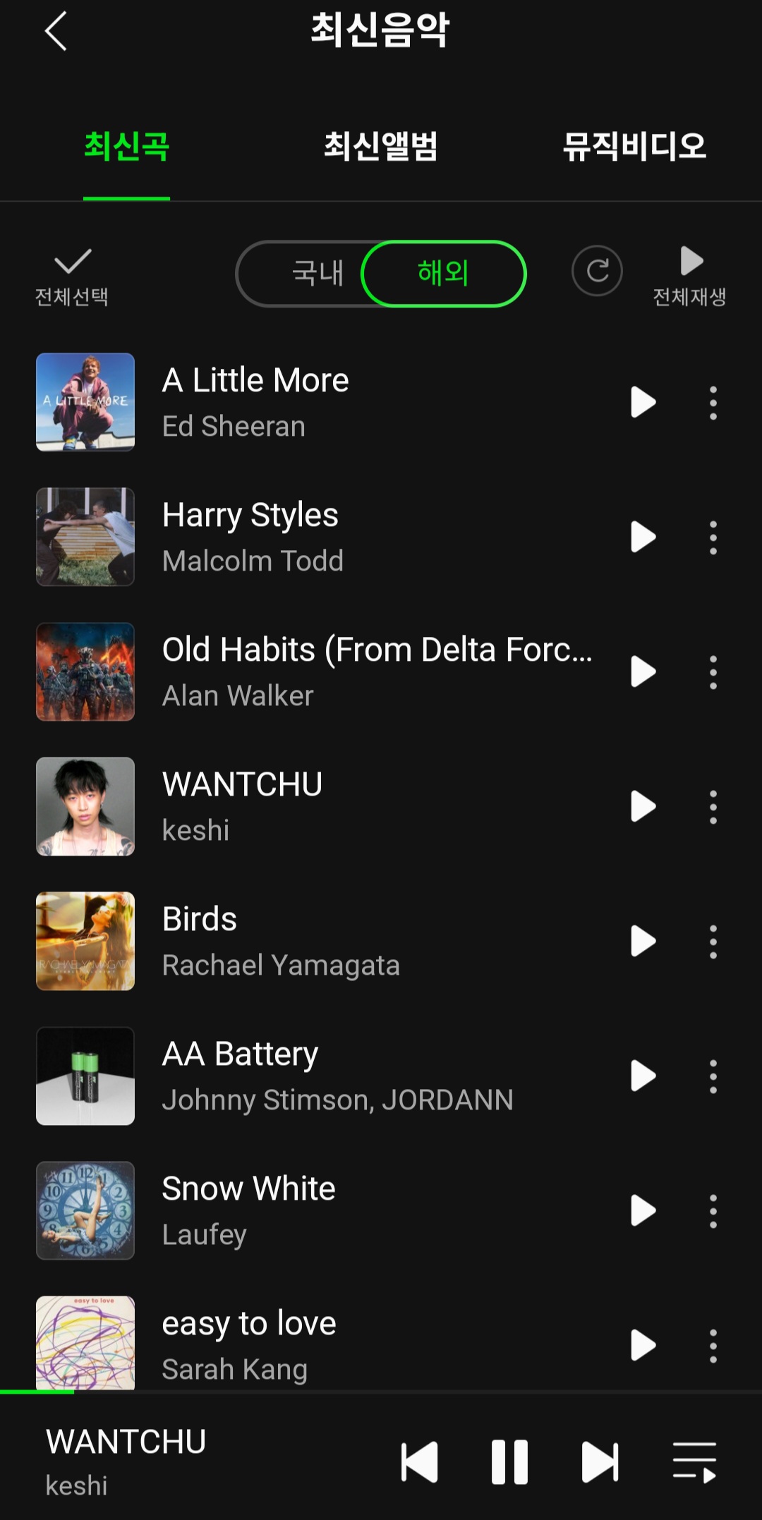 일단, 에드시런, 케시와 죠니 스팀슨 곡이 내 플레이리스트로.