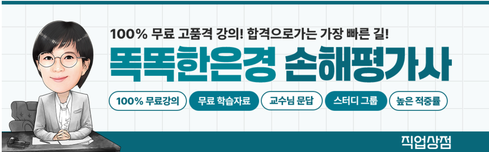 손해평가사 합격으로 가는 가장 빠른 길! 한은경 교수님의 손해평가사 100% 무료 명품 강의를 제공합니다.